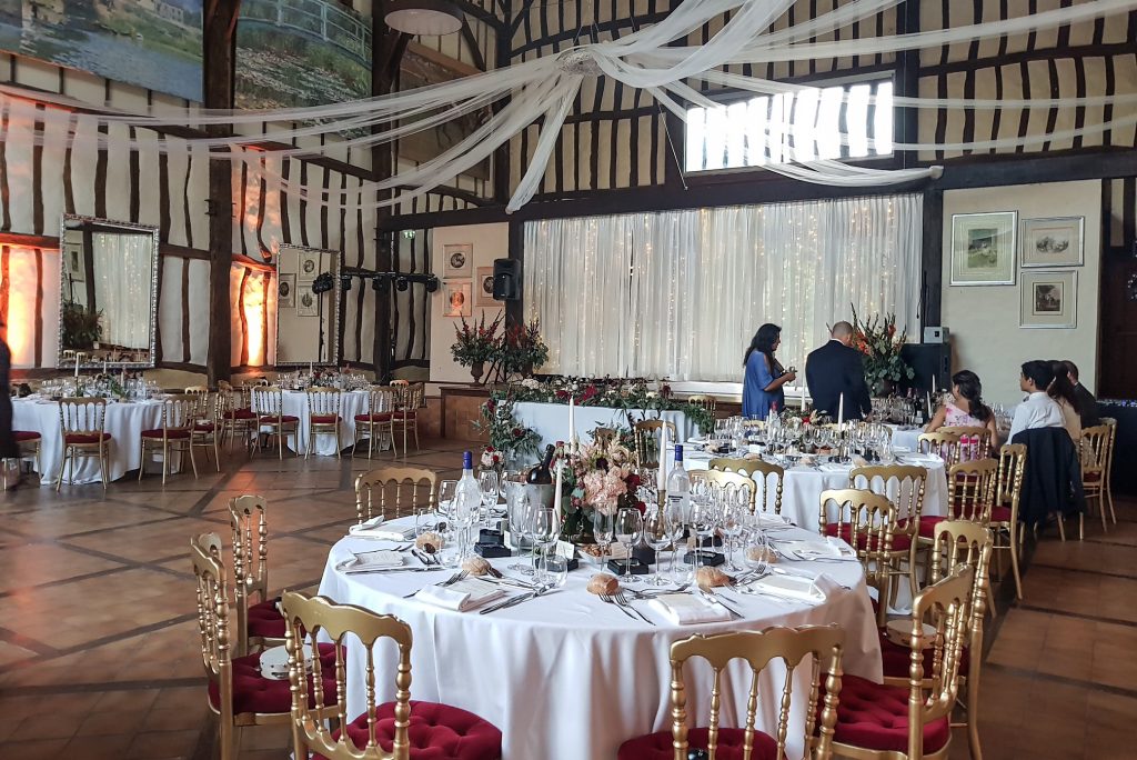 Out front the hall is a large terrace with pergolas and suspended fairy lights. For many, this provides a space for outdoor dining before the guests flow into the hall for the after dinner.